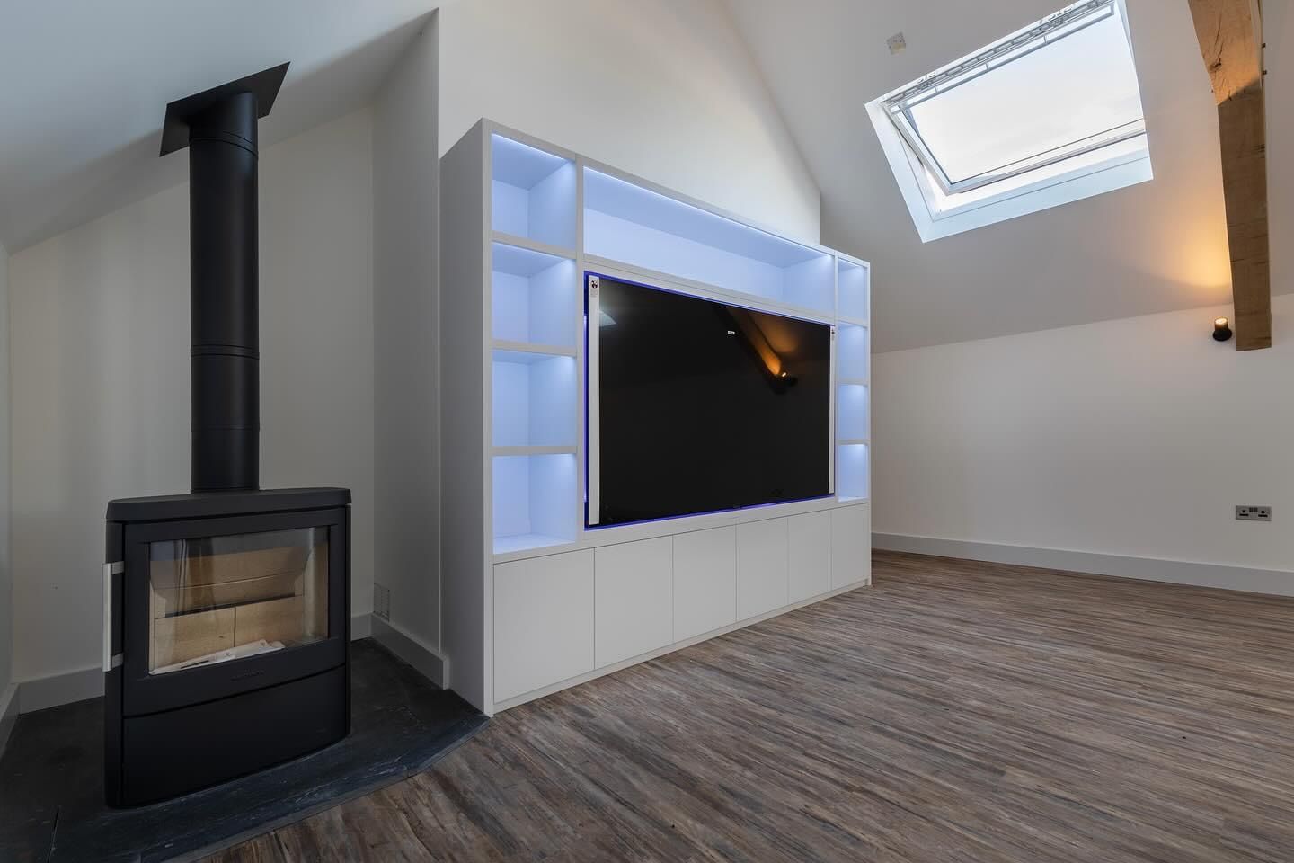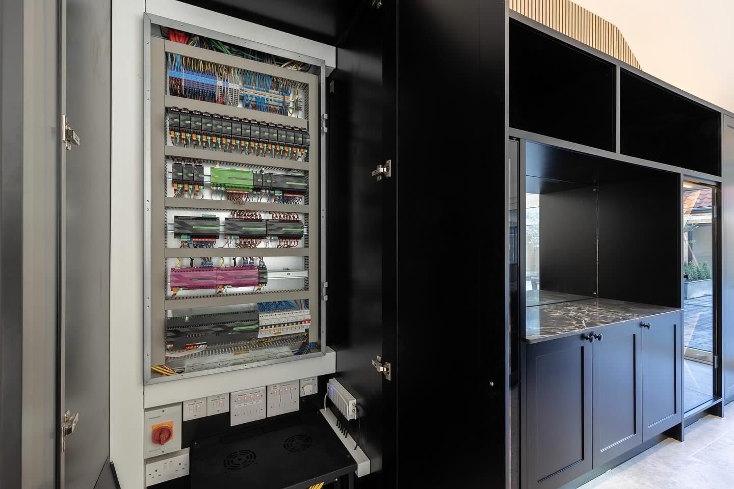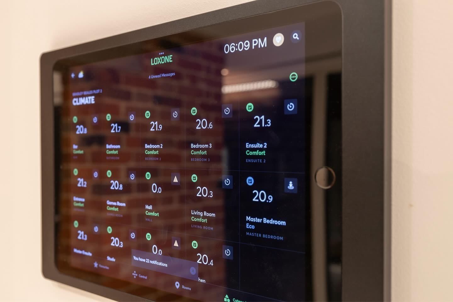 Everything at the touch of a screen. Doorbell access, heating, audio, lighting, alarm...you name it, everything can be controlled from a built-in tablet or iPad making smart home control simply effortless (and it looks pretty cool too)